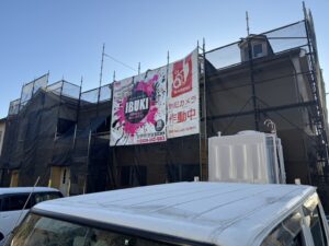 住人様のご協力で、無事に足場組立完了とりました。