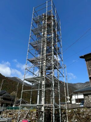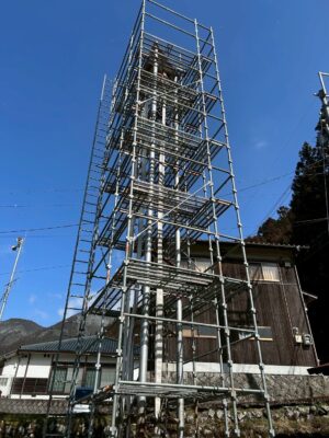 本日は消防鉄塔の足場組立となります
